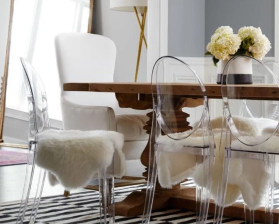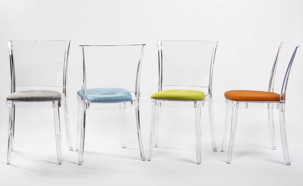 Piensa en las sillas transparentes como un silencio bien colocado en una canción.